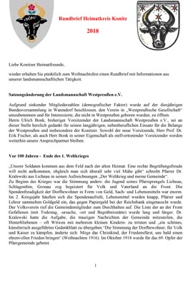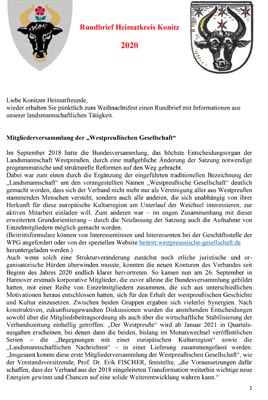- Spätestens seit 2000 jährliche Herausgabe eines Rundbriefs, in dem über die Tätigkeiten des Heimatkreises und über die Heimat betreffende Themen berichtet wird.
